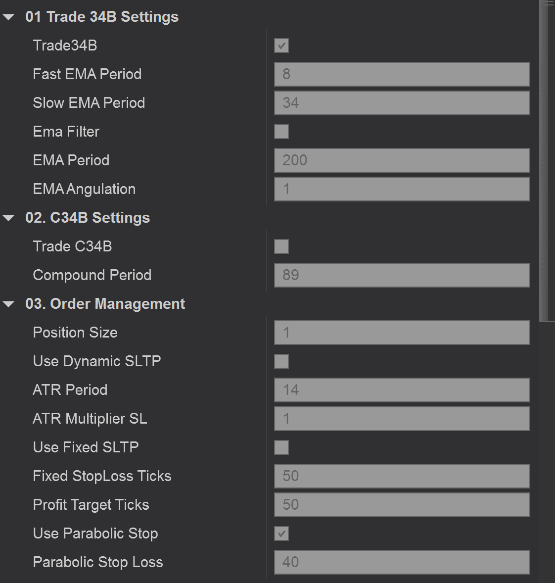 Uses fixed, dynamic or parabolic stop loss to trail orders.